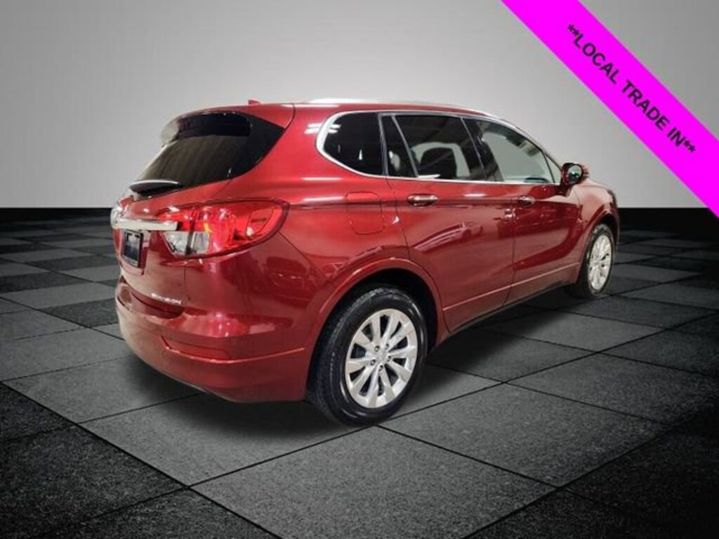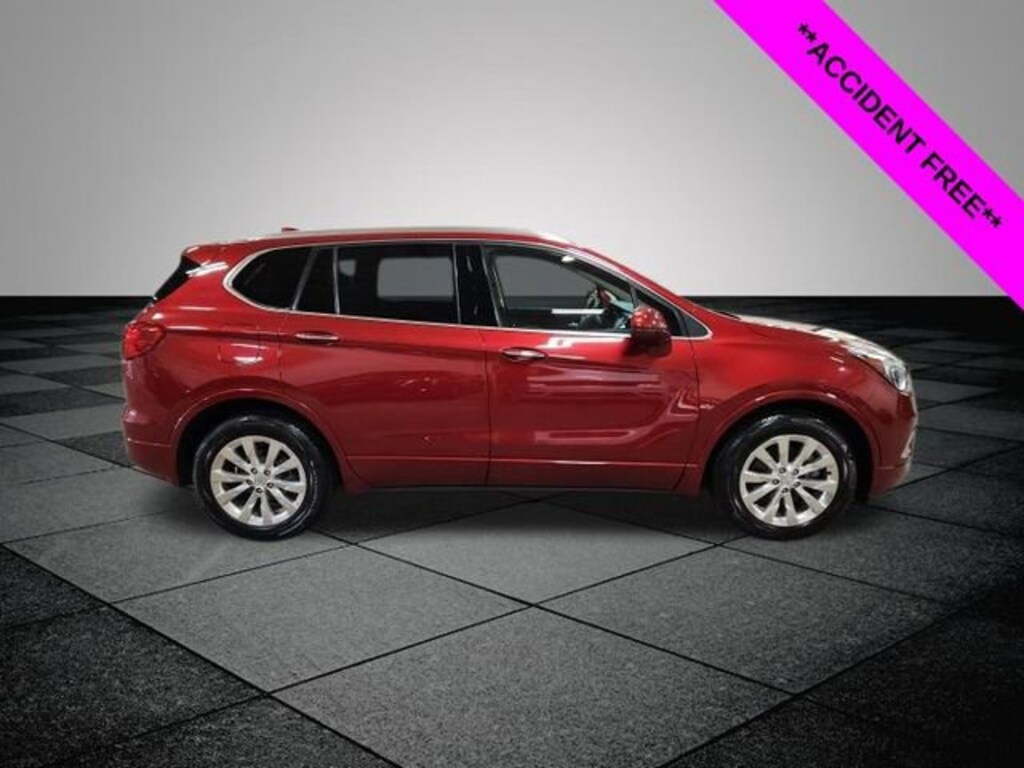 Clean CARFAX. Chili Red Metallic 2017 Buick Envision Essence FWD 6-Speed Automatic 2.5L 4-Cylinder DGI DOHC VVT **ACCIDENT FREE**, **LOCAL TRADE IN**, 18" 10-Spoke Polished Aluminum Wheels, 3.50 Final Drive Axle Ratio, 4-Wheel Disc Brakes, 6 Speakers, 6-Speaker Audio System Feature, ABS brakes, Air Conditioning, Alloy wheels, AM/FM radio: SiriusXM, Apple CarPlay/Android Auto, Auto-dimming door mirrors, Auto-dimming Rear-View mirror, Automatic temperature control, Brake assist, Bumpers: body-color, Cargo Net, Cargo Package (LPO), Cargo Shade, Compass, Delay-off headlights, Driver 8-Way Power Seat Adjuster, Driver door bin, Driver vanity mirror, Dual front impact airbags, Dual front side impact airbags, Electronic Stability Control, Emergency communication system: OnStar Guidance, Exterior Parking Camera Rear, Four wheel independent suspension, Front anti-roll bar, Front Bucket Seats, Front Center Armrest, Front dual zone A/C, Front fog lights, Front Passenger 8-Way Power Seat Adjuster, Front reading lights, Fully automatic headlights, Garage door transmitter, Heated door mirrors, Heated Driver & Front Passenger Seats, Heated front seats, Heated rear seats, Heated steering wheel, Illuminated entry, Knee airbag, Low tire pressure warning, Memory seat, Occupant sensing airbag, Outside temperature display, Overhead airbag, Overhead console, Panic alarm, Passenger door bin, Passenger vanity mirror, Perforated Leather-Appointed Seat Trim, Power door mirrors, Power driver seat, Power Liftgate, Power passenger seat, Power steering, Power windows, Preferred Equipment Group 1SL, Premium audio system: IntelliLink, Radio data system, Radio: Buick IntelliLink AM/FM Stereo, Rear air conditioning, Rear anti-roll bar, Rear Parking Sensors, Rear reading lights, Rear seat center armrest, Rear side impact airbag, Rear window defroster, Rear window wiper, Remote keyless entry, Roof rack: rails only, Security system, SiriusXM Satellite Radio, Speed control, Speed-sensing steering, Split folding rear seat, Spoiler, Steering wheel mounted audio controls, Tachometer, Telescoping steering wheel, Tilt steering wheel, Traction control, Trip computer, Turn signal indicator mirrors, Variably intermittent wipers.