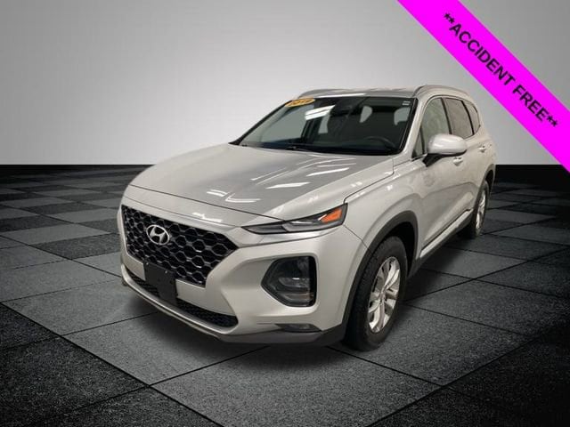 Clean CARFAX. Silver 2019 Hyundai Santa Fe SE AWD 8-Speed Automatic with SHIFTRONIC 2.4L I4 DGI DOHC 16V LEV3-ULEV70 185hp ** LOW MILES**, **ACCIDENT FREE**, **LOCAL TRADE IN**, AWD, Black Cloth, 17" x 7.0J Alloy Wheels, 4-Wheel Disc Brakes, 6 Speakers, ABS brakes, Air Conditioning, Alloy wheels, AM/FM radio, Apple CarPlay & Android Auto, Auto High-beam Headlights, Axle Ratio 4.081, Brake assist, Bumpers: body-color, Delay-off headlights, Driver door bin, Driver vanity mirror, Dual front impact airbags, Dual front side impact airbags, Electronic Stability Control, Exterior Parking Camera Rear, Four wheel independent suspension, Front anti-roll bar, Front Bucket Seats, Front Center Armrest, Front reading lights, Fully automatic headlights, Illuminated entry, Low tire pressure warning, Occupant sensing airbag, Outside temperature display, Overhead airbag, Overhead console, Panic alarm, Passenger door bin, Passenger vanity mirror, Power door mirrors, Power steering, Power windows, Radio: AM/FM/MP3 Display Audio, Rear anti-roll bar, Rear seat center armrest, Rear window defroster, Rear window wiper, Remote keyless entry, Security system, Speed control, Speed-sensing steering, Split folding rear seat, Spoiler, Stain-Resistant Cloth Seating Surfaces, Steering wheel mounted audio controls, Tachometer, Telescoping steering wheel, Tilt steering wheel, Traction control, Trip computer, Variably intermittent wipers, AWD, Black Cloth.