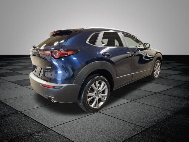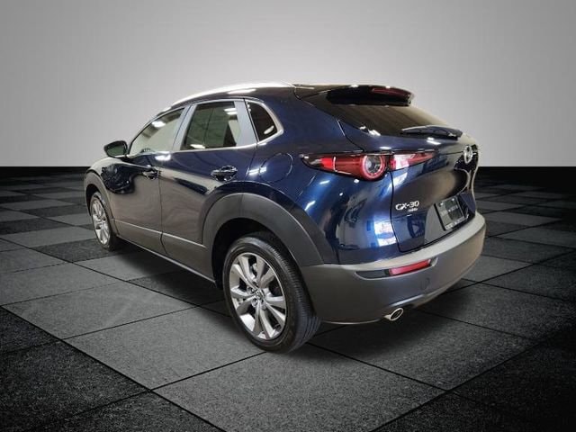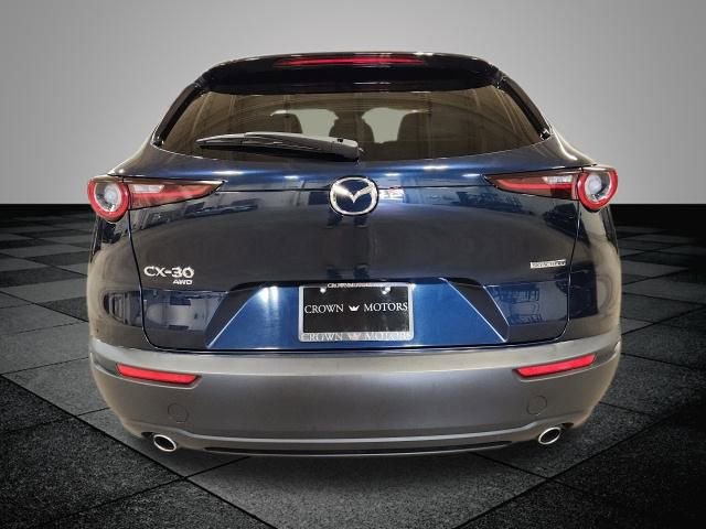 CARFAX One-Owner. Crystal Blue 2024 Mazda CX-30 2.5 S Preferred Package AWD 6-Speed Automatic SKYACTIV® 2.5L 4-Cylinder DOHC 16V **ONE OWNER**, AWD, 4-Wheel Disc Brakes, 4.095 Axle Ratio, 6 Speakers, ABS brakes, Air Conditioning, Alloy wheels, AM/FM radio, AppLink/Apple CarPlay and Android Auto, Auto High-beam Headlights, Automatic temperature control, Brake assist, Bumpers: body-color, Compass, Delay-off headlights, Driver door bin, Driver vanity mirror, Dual front impact airbags, Dual front side impact airbags, Electronic Stability Control, Emergency communication system: Mazda Connected Services (3-year complimentary trial included), Exterior Parking Camera Rear, Front anti-roll bar, Front Bucket Seats, Front Center Armrest, Front dual zone A/C, Front reading lights, Front wheel independent suspension, Fully automatic headlights, Heated door mirrors, Heated Front Bucket Seats, Heated front seats, Illuminated entry, Knee airbag, Leather Shift Knob, Leather steering wheel, Leatherette Seat Trim, Low tire pressure warning, MAZDA CONNECT Infotainment System, Mazda Navigation System, Memory seat, Occupant sensing airbag, Outside temperature display, Overhead airbag, Overhead console, Panic alarm, Passenger door bin, Passenger vanity mirror, Power door mirrors, Power driver seat, Power moonroof, Power steering, Power windows, Radio data system, Radio: AM/FM Audio System, Rain sensing wipers, Rear seat center armrest, Rear side impact airbag, Rear window defroster, Rear window wiper, Remote keyless entry, Speed control, Speed-sensing steering, Split folding rear seat, Spoiler, Steering wheel mounted audio controls, Tachometer, Telescoping steering wheel, Tilt steering wheel, Traction control, Trip computer, Turn signal indicator mirrors, Variably intermittent wipers, Wheels: 18" x 7J Aluminum Alloy, AWD.