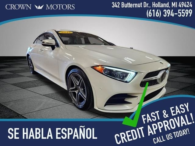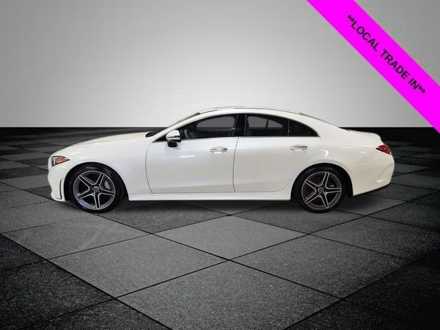 Diamond White 2019 Mercedes-Benz CLS CLS 450 4MATIC® 4MATIC® 9-Speed Automatic I6 ** LOW MILES**, **LOCAL TRADE IN**, 4MATIC®, 13 Speakers, 4-Wheel Disc Brakes, ABS brakes, Air Conditioning, Alloy wheels, AM/FM radio: SiriusXM, Apple CarPlay®/Android Auto®, Auto tilt-away steering wheel, Auto-dimming door mirrors, Auto-dimming Rear-View mirror, Automatic temperature control, Brake assist, Bumpers: body-color, Child-Seat-Sensing Airbag, Compass, Delay-off headlights, Driver door bin, Driver vanity mirror, Dual front impact airbags, Dual front side impact airbags, Electronic Stability Control, Emergency communication system: eCall Emergency System, Exterior Parking Camera Rear, Four wheel independent suspension, Front anti-roll bar, Front Bucket Seats, Front Center Armrest, Front dual zone A/C, Front reading lights, Fully automatic headlights, Garage door transmitter: Homelink, Genuine wood dashboard insert, Genuine wood door panel insert, Headlight cleaning, Heated door mirrors, Heated front seats, Heated Power Front Bucket Seats, Illuminated entry, Knee airbag, Leather Upholstery, Low tire pressure warning, Memory seat, Navigation system: COMAND®, Occupant sensing airbag, Outside temperature display, Overhead airbag, Overhead console, Panic alarm, Passenger door bin, Passenger vanity mirror, Power door mirrors, Power driver seat, Power moonroof, Power passenger seat, Power steering, Power windows, Premium audio system: COMAND®, Radio data system, Radio: COMAND® Navigation System, Rain sensing wipers, Rear anti-roll bar, Rear reading lights, Rear seat center armrest, Rear window defroster, Remote keyless entry, Security system, Speed control, Speed-sensing steering, Split folding rear seat, Steering wheel memory, Steering wheel mounted audio controls, Tachometer, Telescoping steering wheel, Tilt steering wheel, Traction control, Trip computer, Turn signal indicator mirrors, Variably intermittent wipers, Wheels: 19" Twin Multi-Spoke, 4MATIC®.