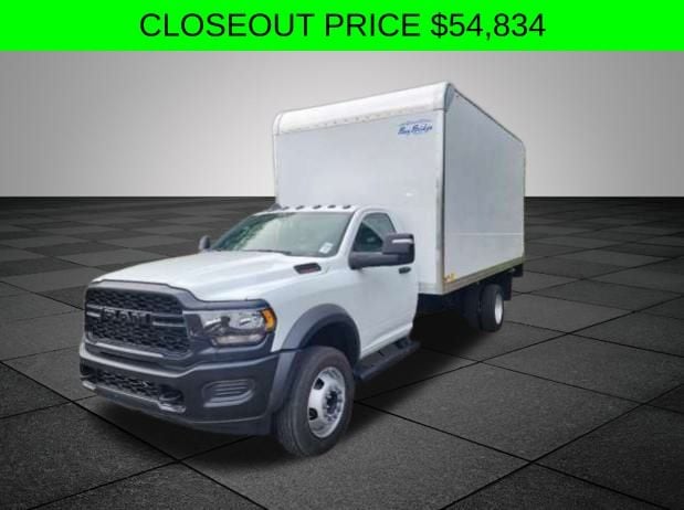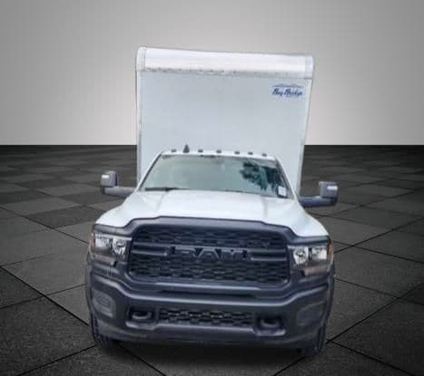Clean CARFAX.16ft BAY BRIDGE BOX TRUCK - White 2024 Ram 5500HD Tradesman RWD Aisin 6-Speed Automatic 6.4L V8 19.5" x 6.0" Steel Wheels, 4 Speakers, 4-Wheel Disc Brakes, 87 mph Maximum Speed, ABS brakes, Air Conditioning, Black Exterior Mirrors, Compass, Delay-off headlights, Driver door bin, Dual front impact airbags, Dual rear wheels, Electronic Stability Control, Electronically Controlled Throttle, Emergency communication system: SiriusXM Guardian, For Details, Visit DriveUconnect.com, For More Info, Call 800-643-2112, Front anti-roll bar, Front Bucket Seats, Fully automatic headlights, Global Telematics Box Module (TBM), GPS Antenna Input, HD Vinyl 40/20/40 Split Bench Seat, Integrated Voice Command w/Bluetooth, Manual Adjust 4-Way Driver Seat, Manual Adjust 4-Way Front Passenger Seat, Manual Folding Exterior Mirrors, Manual Telescoping Mirrors, Occupant sensing airbag, Outside temperature display, Passenger door bin, Passenger vanity mirror, Power steering, Radio data system, Radio: Uconnect 3 w/5" Display, Rear anti-roll bar, SiriusXM Radio Service, Speed control, Tachometer, Temperature & Compass Gauge, Tilt steering wheel, Traction control, Variably intermittent wipers, Voltmeter.